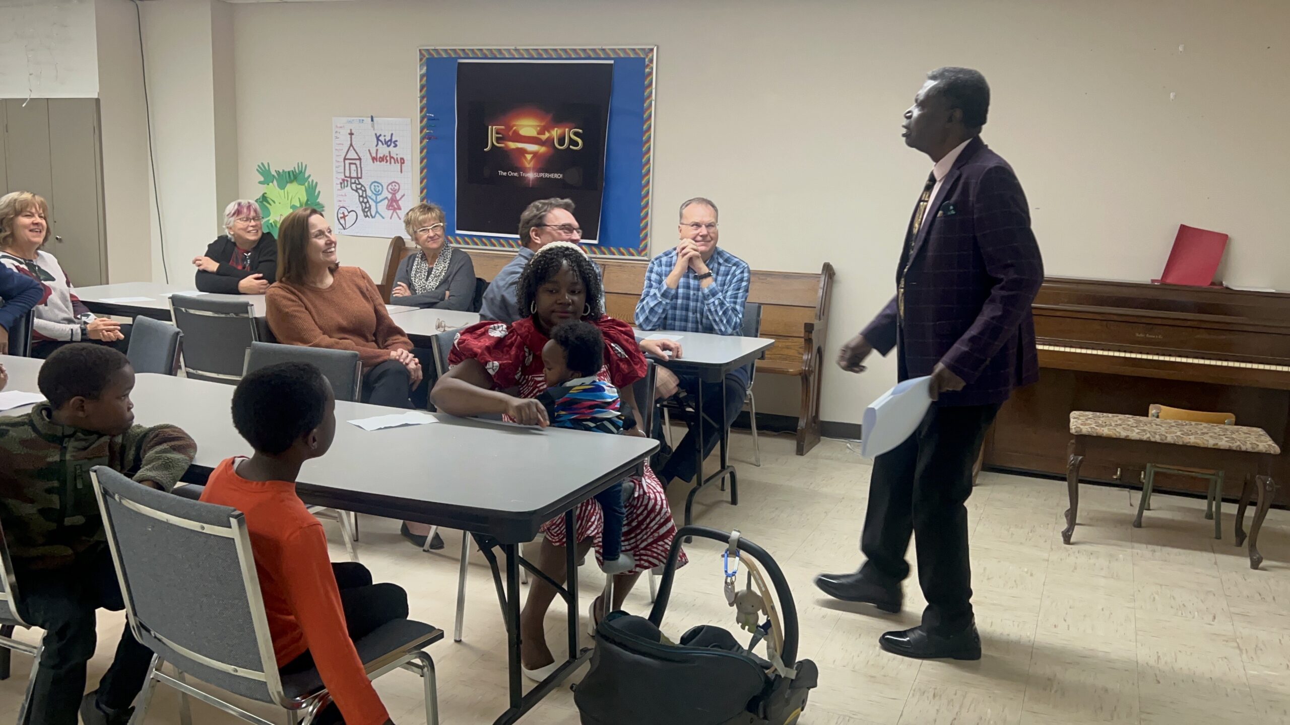 Rev. Emmanuel Appiah offered a geography lesson, explaining where Ghana is located in Africa. He also gave a brief history of Ghana, including when the region was known as the Gold Coast, to when it became part of the British Empire, and how it gained its independence in 1957.