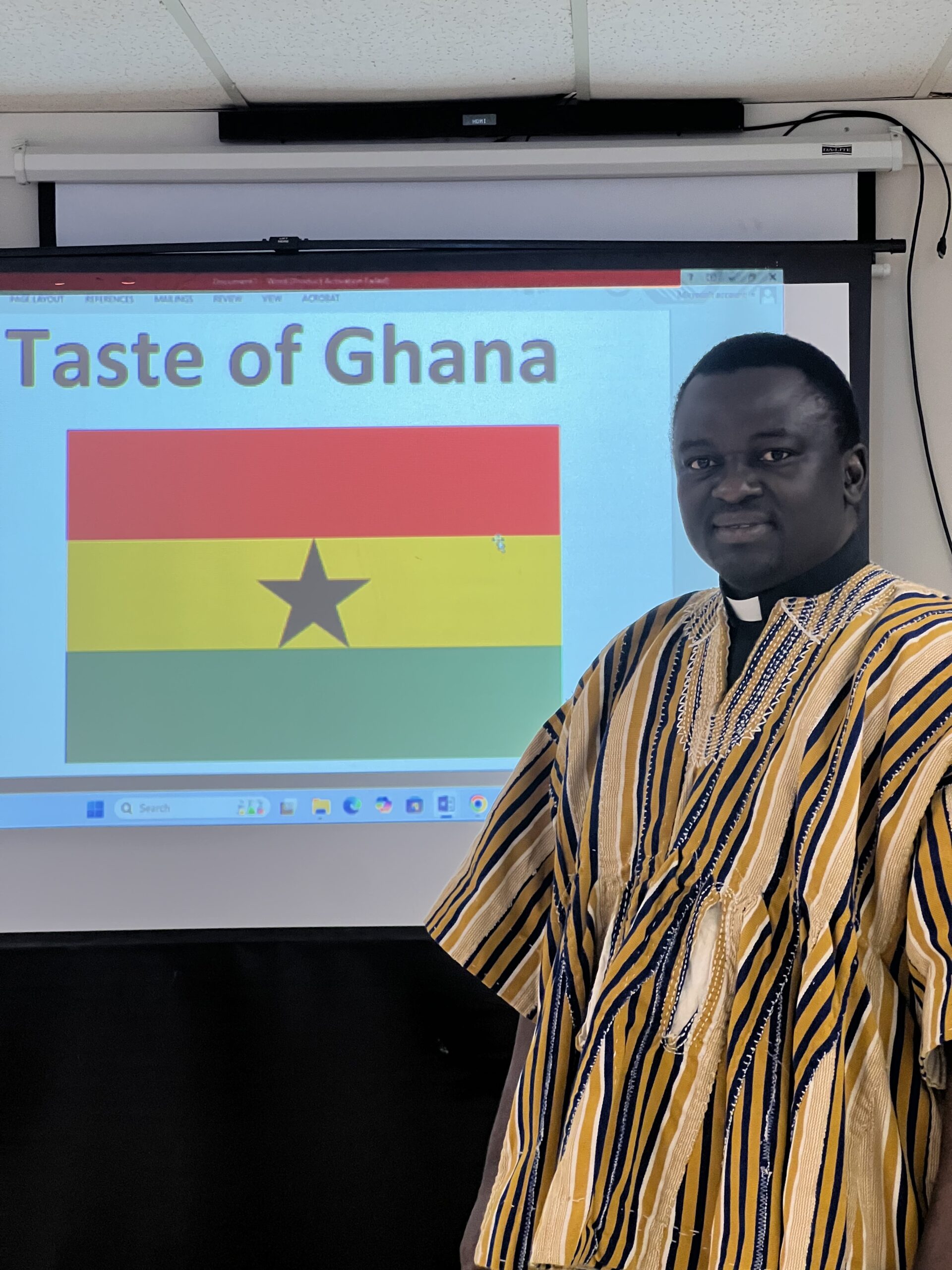 Rev. Botchway played videos that showed the sights, the people, and the landscape, as well as music and dancing, which showed the beautiful colours worn by the people.