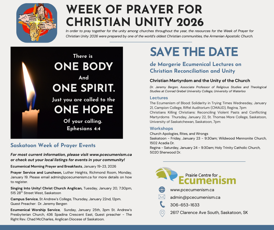 SASKATOON — The inaugural De Margerie ecumenical lecture was held in Saskatoon in January 2013 and was originally started as a partnership of the Prairie