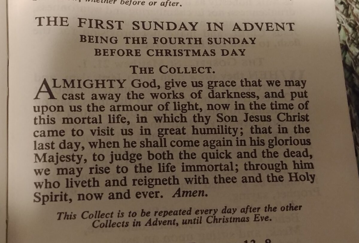 The First Sunday in Advent Being the fourth Sunday before Christmas Day The Collect Almighty God, give us grace that we may cast away the