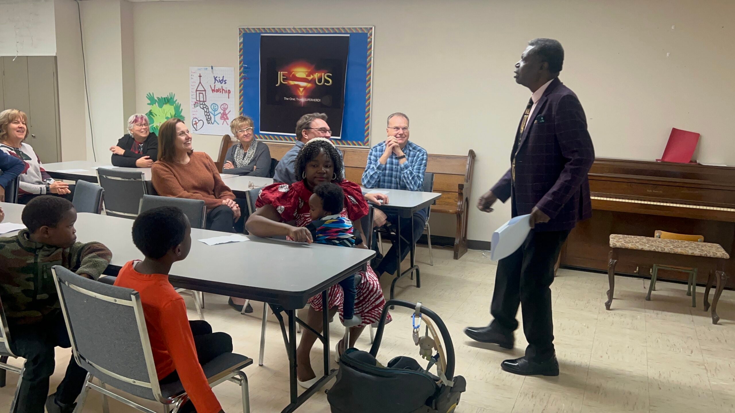 Rev. Emmanuel Appiah offered a geography lesson, explaining where Ghana is located in Africa. He also gave a brief history of Ghana, including when the region was known as the Gold Coast, to when it became part of the British Empire, and how it gained its independence in 1957.