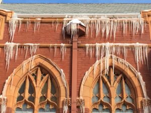 The roof was leaking, the gutters had failed and water from the roof was leaking in and pouring down the sides of the building, causing damage to terracotta and brick. Furthermore, the glass protecting the stained-glass windows was not sufficient, shingles were falling off the roof, and bricks were crumbling. There was an urgent and critical need for restoration work on the beautiful, historic building.