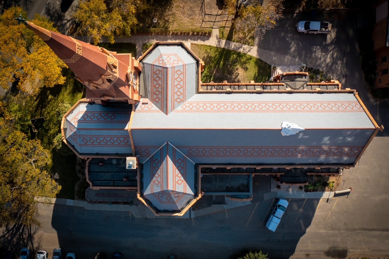 The roof was leaking, the gutters had failed and water from the roof was leaking in and pouring down the sides of the building, causing damage to terracotta and brick. Furthermore, the glass protecting the stained-glass windows was not sufficient, shingles were falling off the roof, and bricks were crumbling. There was an urgent and critical need for restoration work on the beautiful, historic building.