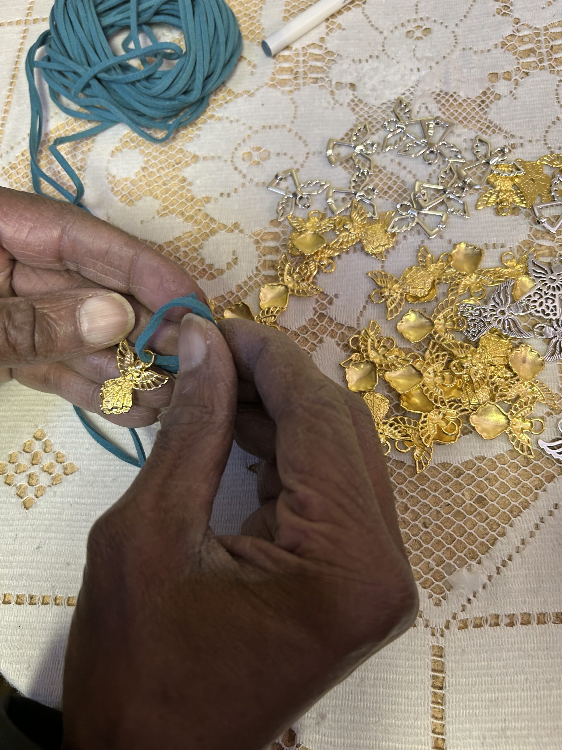 In addition to videos and readings of Scripture, the participants used angels and angel wings to make necklaces, bracelets, bookmarks, or rearview mirror ornaments. St. Matthew is often represented as a winged man, an angel, or as accompanied by an angel, and the participants were encouraged to put their item where they would encounter it often, and to use it as a tool to recall what they had learned in the session.