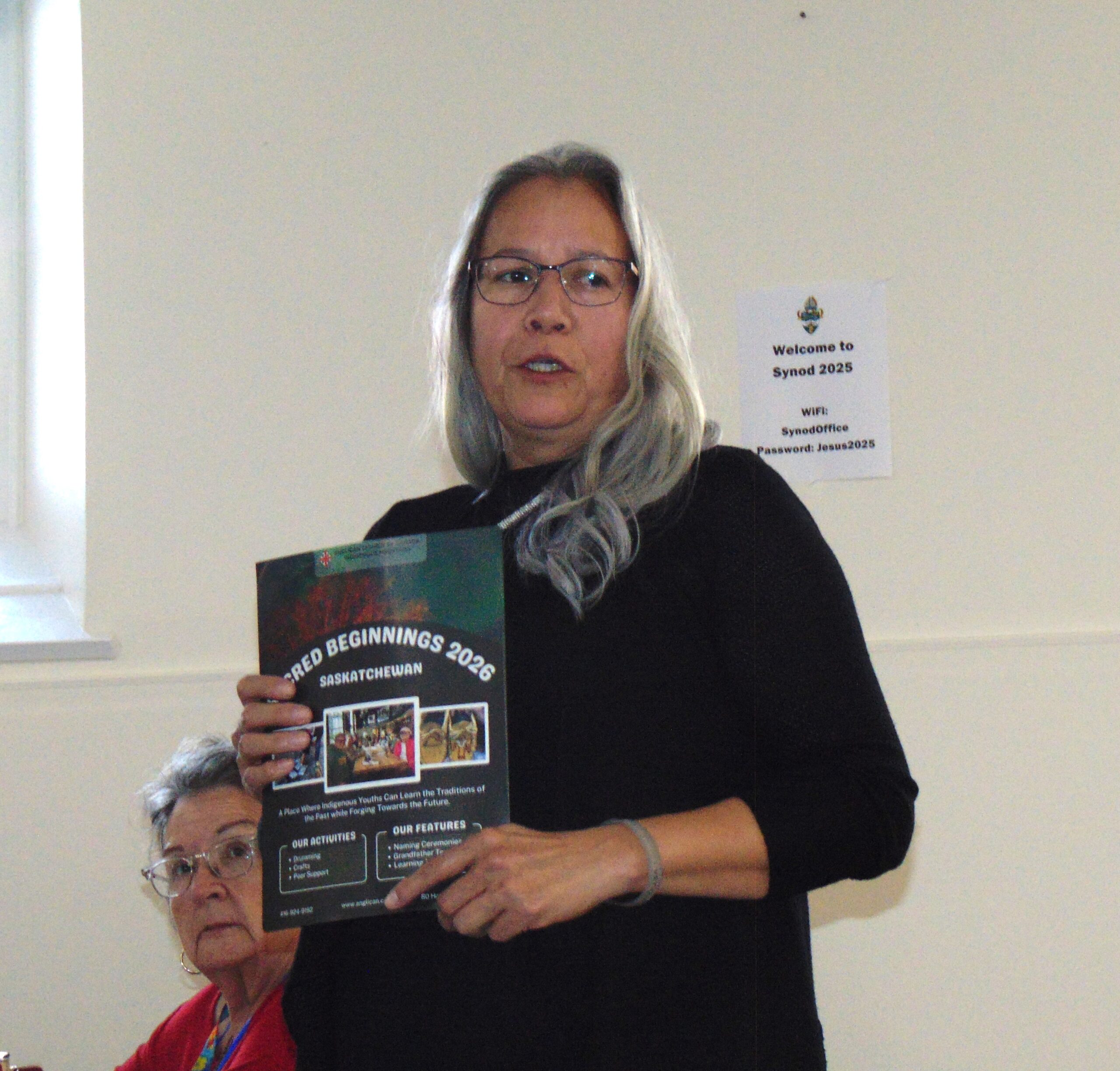 The Rev. Dixie Bird, representing the Anglican Church of Canada’s Indigenous Ministries, spoke about an initiative where Indigenous youth can learn the traditions of the past while forging towards the future. There will be a Sacred Beginnings event held in Saskatchewan at Camp Harding in 2026.